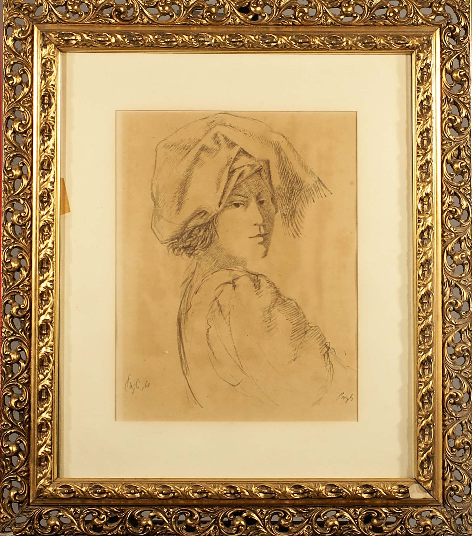 Corrado Cagli (Ancona 1910-Roma 1976), "Ritratto di giovane", stampa, cm. 47x36.