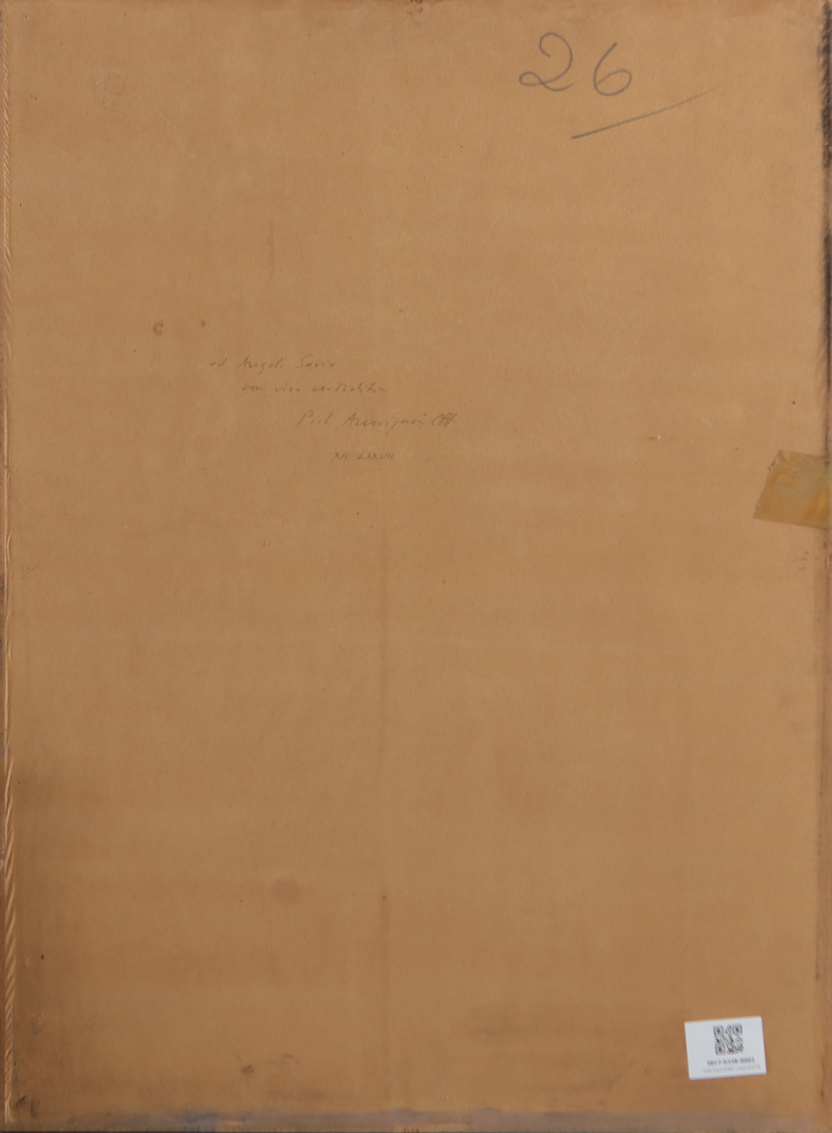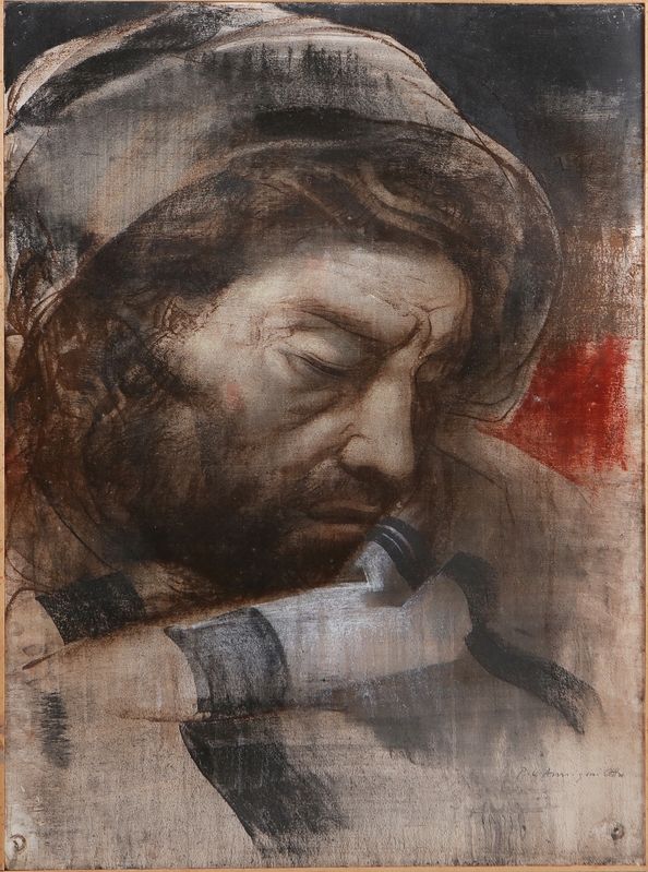 ANNIGONI PIETRO (1910 - 1988) Character of distant memories. Mixed media on paper on board. Cm 80,00 x 60,00. Signature lower right. At the back signed dedication. Publication: Ugo Longo, The Christ of Annigoni, Comanducci Ar. Editions, p. 11. Cornice presente