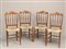 Quattro sedie in faggio, struttura in legno traforato e tornito, seduta...