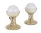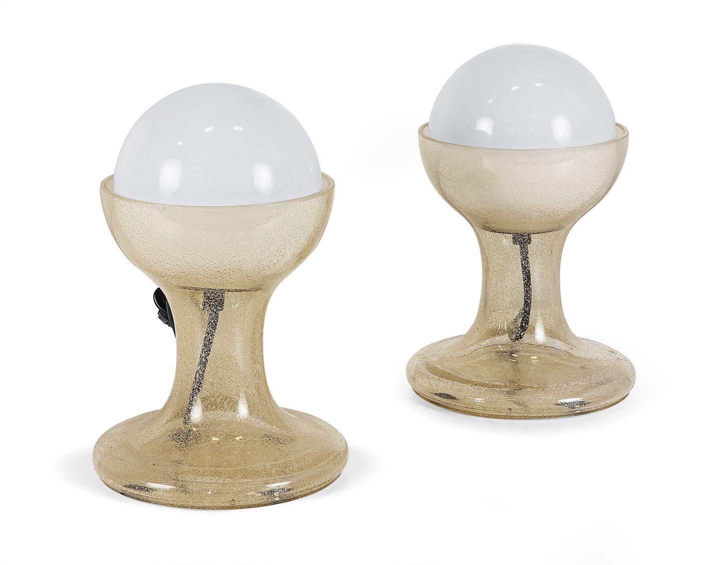 NASON CARLO - LT 216, Due lampade da tavolo. Vetro azzurro chiaro che sorregge una sfera di vetro opalino. Prod. Mazzega (1968). H cm 24. Bibl.: Paola Palma Carlo Vannicola,"Italian Light 1960-1980, Cento lampade della collezione Cortopassi", Alinea Editrice 2004, pag. 63.