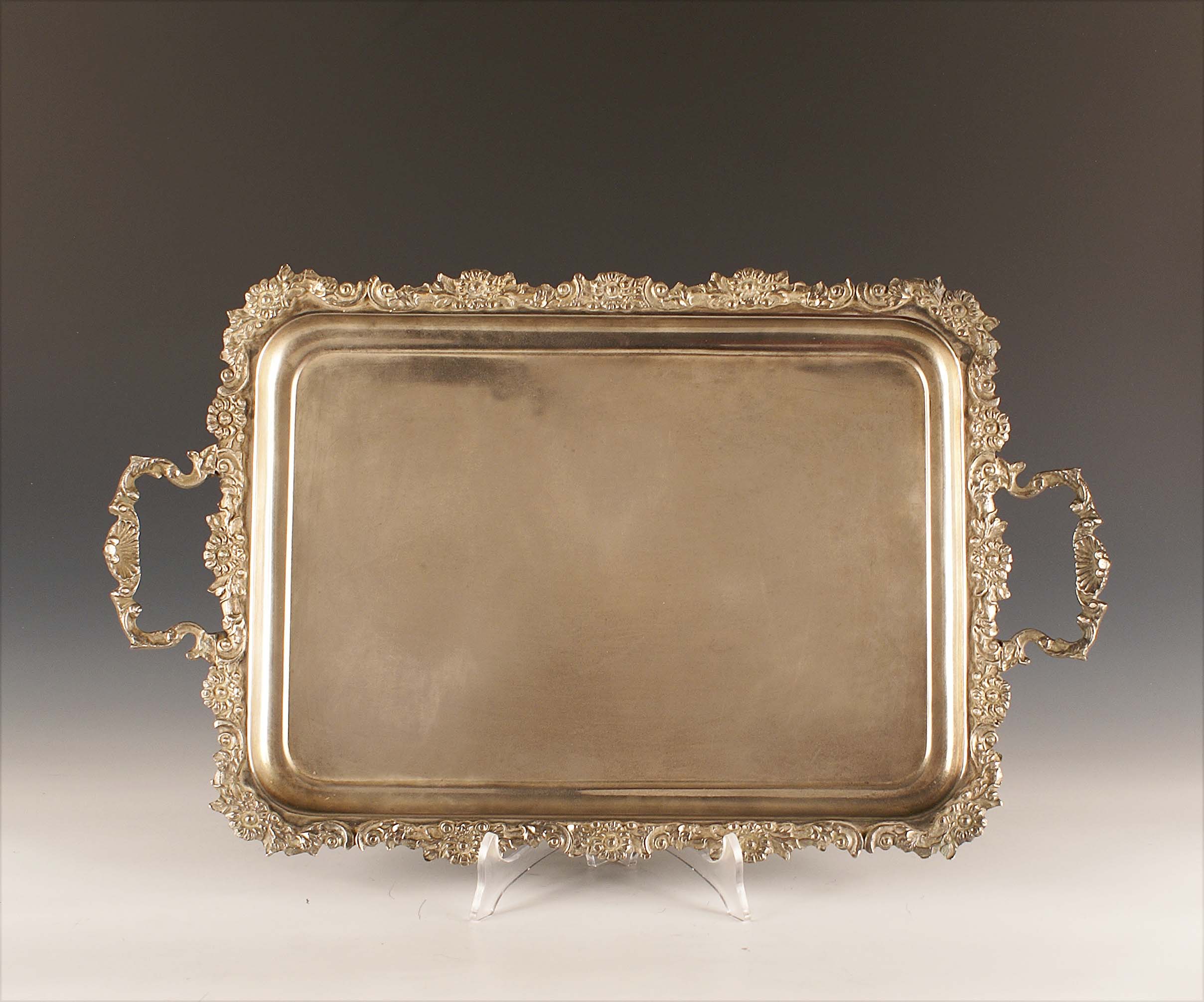 Vassoio rettangolare in metallo con due manici, cm. 56x33.