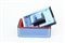 Cristallo colorato molato argentato, interno e fondo rivestiti in panno rosso, etichetta frammentaria.