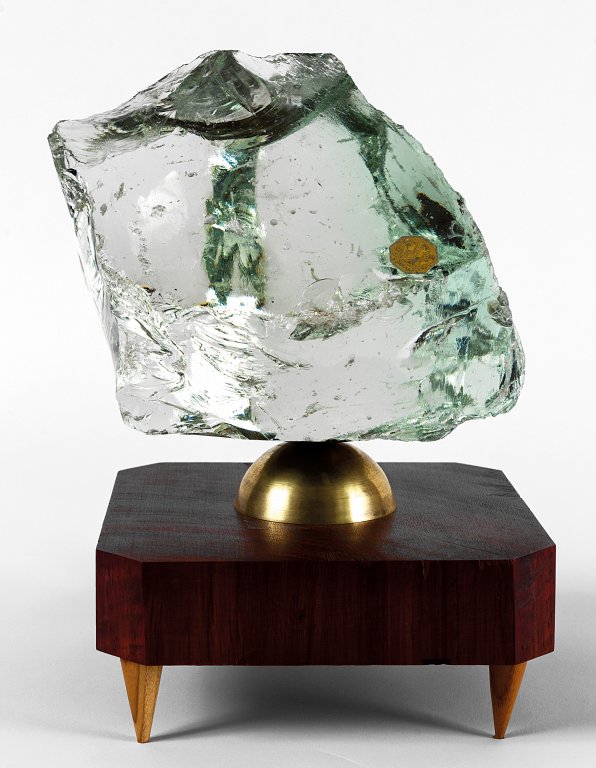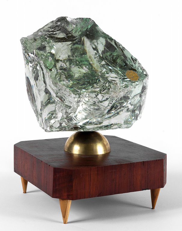 SAINT GOBAIN (Editore)Una scultura, anni '60. Cristallo scalpellato, legno di...