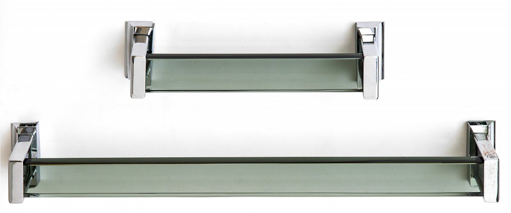 UNA COPPIA DI PORTA ASCIUGAMANI DA BAGNO, anni '70.Cristallo grigio molato,...
