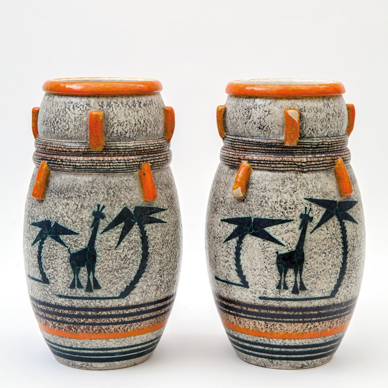 MGA, Albisola. Una coppia di vasi, 1933. Ceramica formata al tornio con...