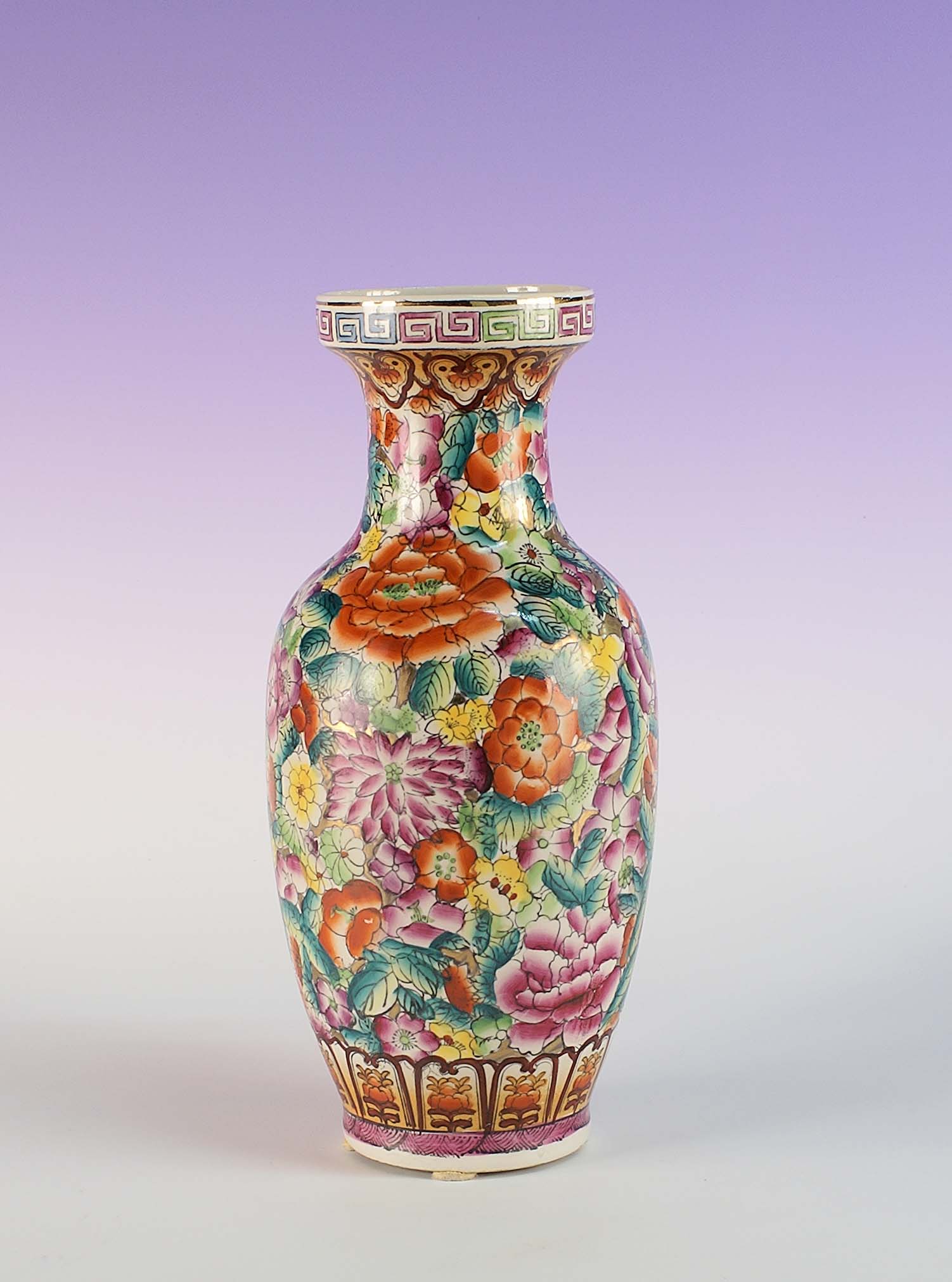 Vaso a balaustro in porcellana dipinta a policromia e decorata a motivo floreale, Cina, vecchia manifattura, h. cm. 32.