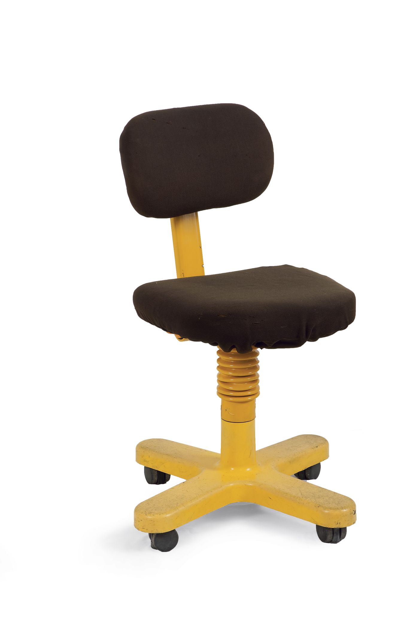 SOTTSASS ETTORE - Sedia regolabile su ruote Sistema 45. Fusione di alluminio laccato, stelo estensibile rivestito in gomma, imbottitura in poliuretano, rivestimento in tessuto. Prod. Olivetti 1973. Bibl.: Barbara Radice (a cura di) "Ettore Sottsass", Electa 1993, pag.104-105.
