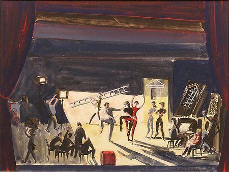 Piero Verbinschak (XX secolo), "Prove di ballo", tempera su cartoncino, cm....