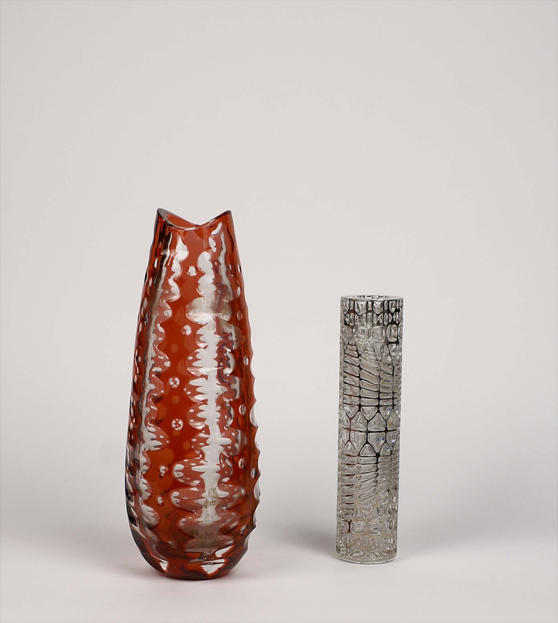 Lotto composto da 2 vasi in vetro trasparente e colorato, fogge e misure diverse, Murano vecchia manifattura.