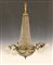 Lampadario a quindici luci in bronzo dorato e cesellato con fili di sfere...
