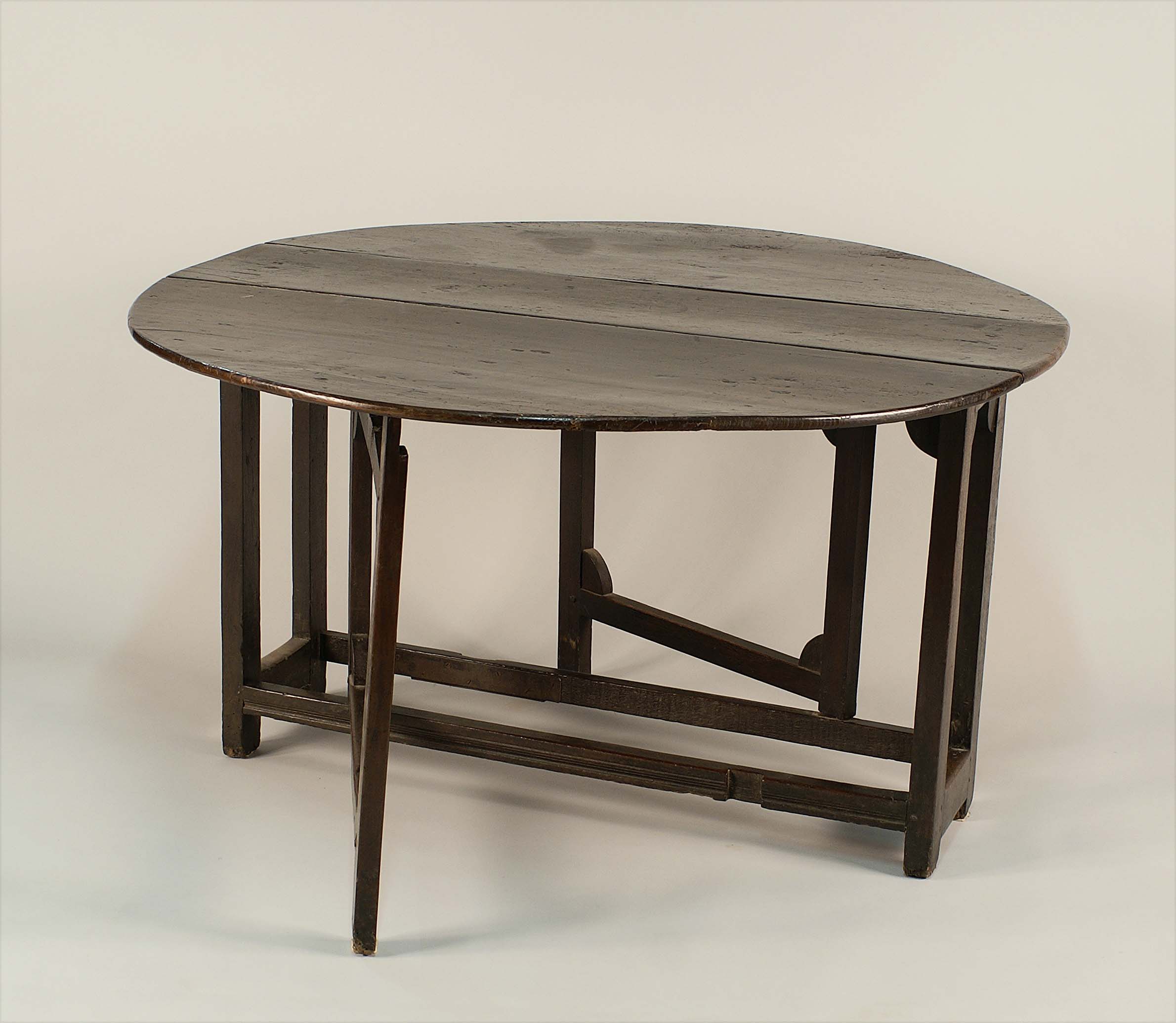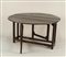Tavolo console apribile in rovere, piano rettangolare poggiante su struttura architettonica, cm. 70x121x30, munito di due alette da cm. 54 cadauna.