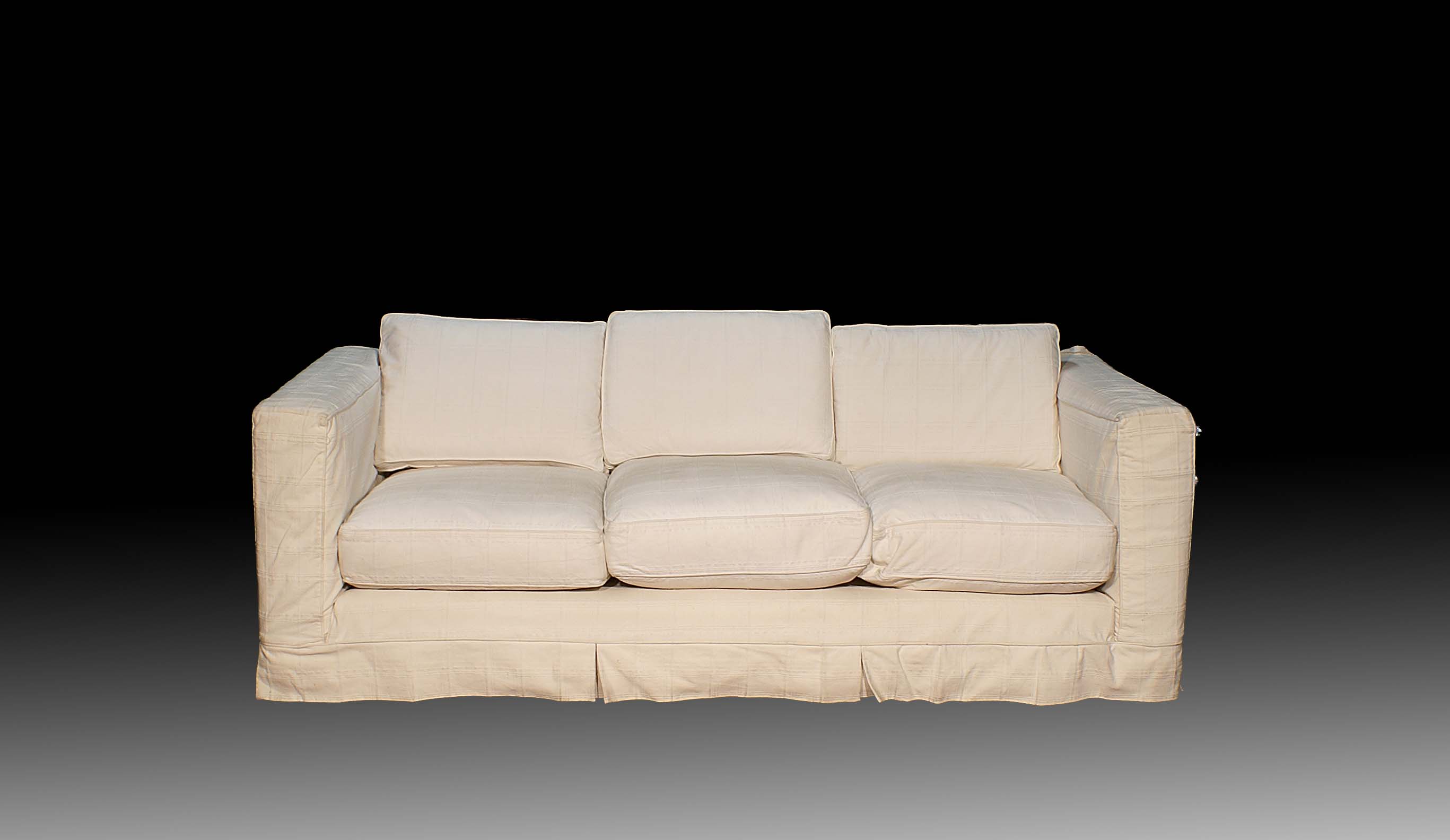 Lotto 293 | Divano a tre posti di linea squadrata interamente imbottito e rivestito in...