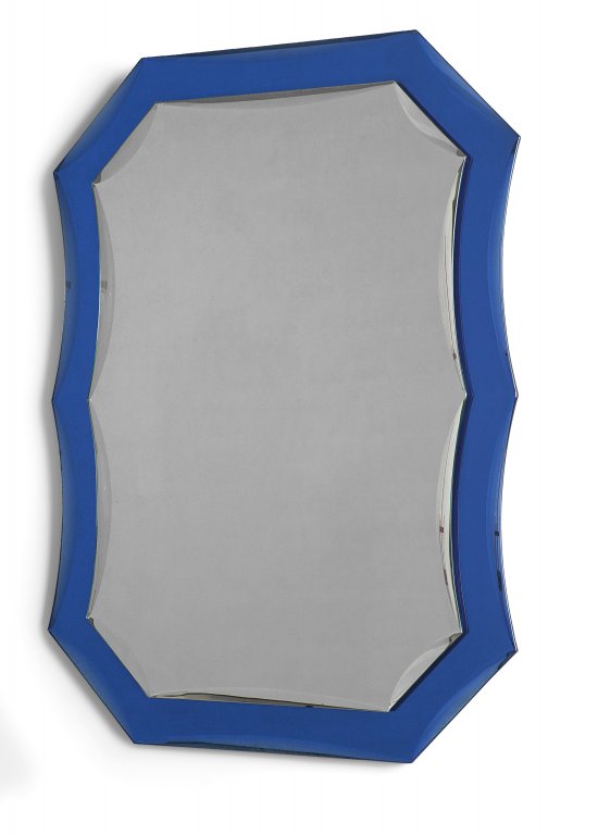 UNO SPECCHIO DA PARETE, anni '70. Cristallo colorato sagomato e molato,...