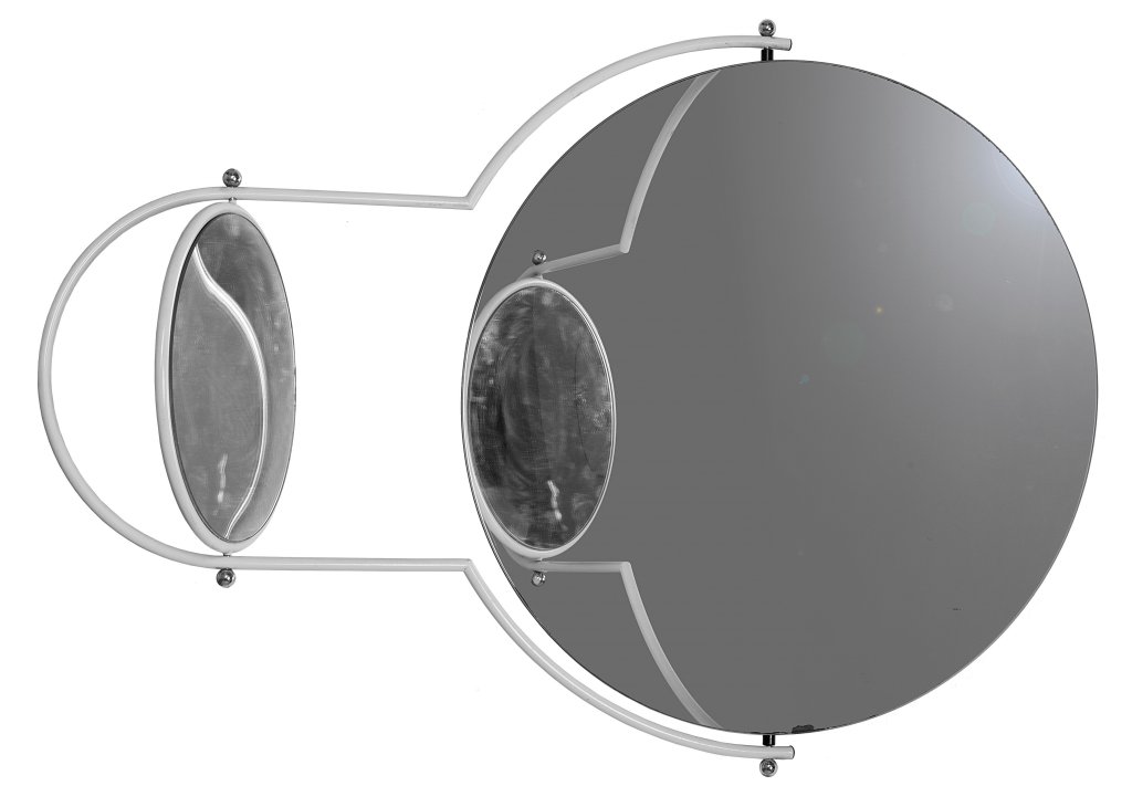 Acciaio smaltato, cristallo argentato.