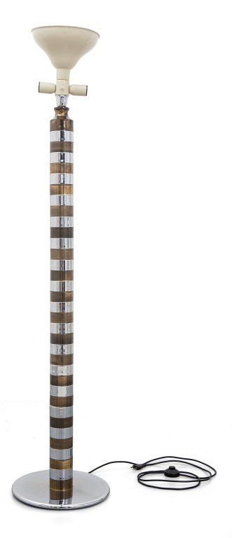 UNA LAMPADA DA TERRA, anni '70. Ottone ossidato, acciaio cromato. Altezza cm...