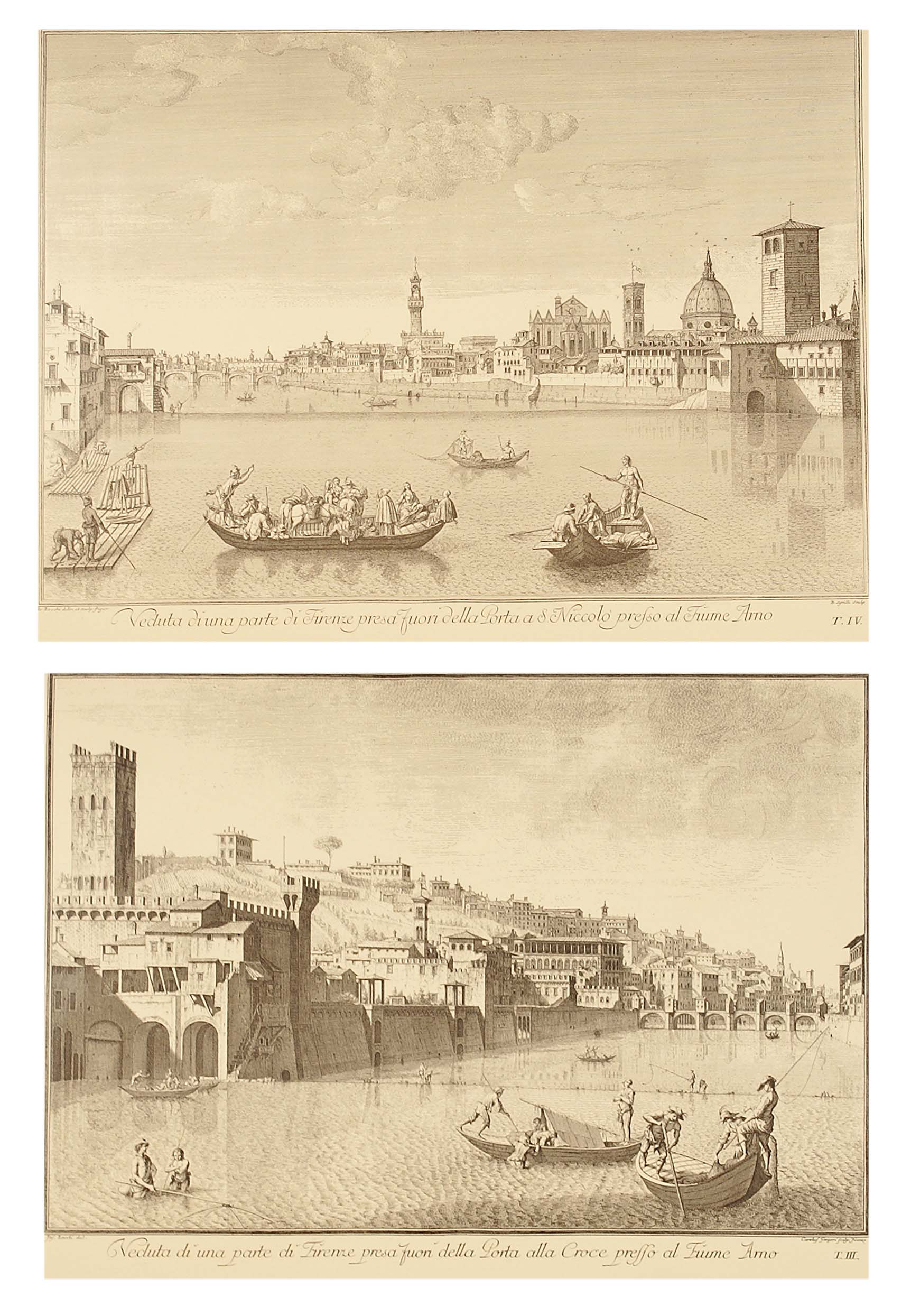 Coppia di stampe raffiguranti vedute di Firenze, cm. 35x50.