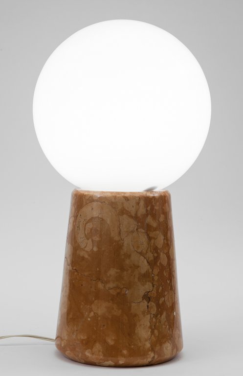 UNA LAMPADA DA TAVOLO, anni '70. Marmo rosso di Verona, vetro opalino....