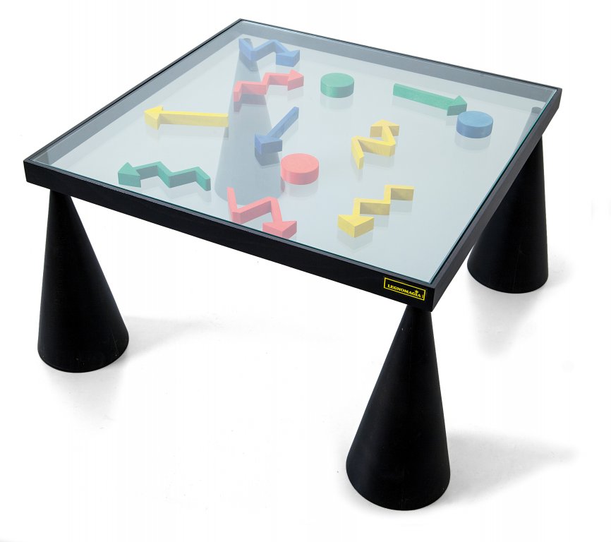 LEGNOMAGIA (Editore)Un tavolino, inizi anni '80. Legno laccato, cristallo,...