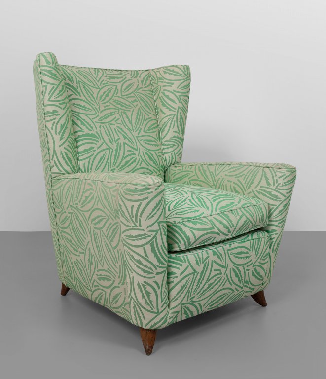 PAOLO BUFFA Una poltrona, anni '50. Struttura in legno, piedini in legno di...