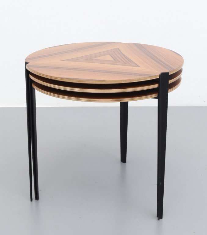 Tre tavolini sovrapponibili "T61 e" per TECNO, 1957.