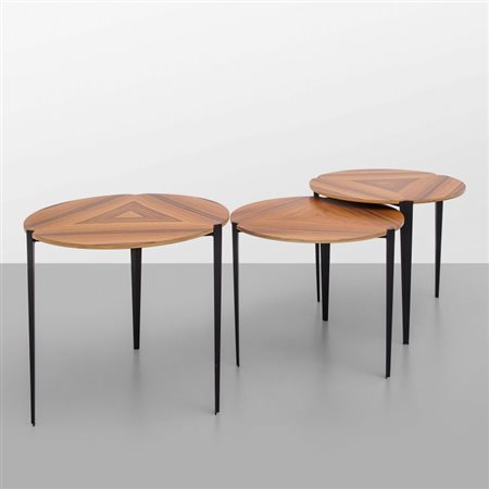 OSVALDO BORSANI Tre tavolini sovrapponibili "T61 e" per TECNO, 1957. Lamiera...