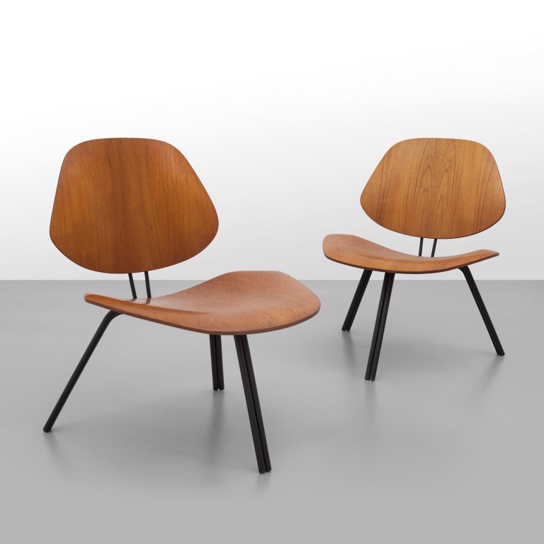 Varnished steel and bent teak veneered plywood.