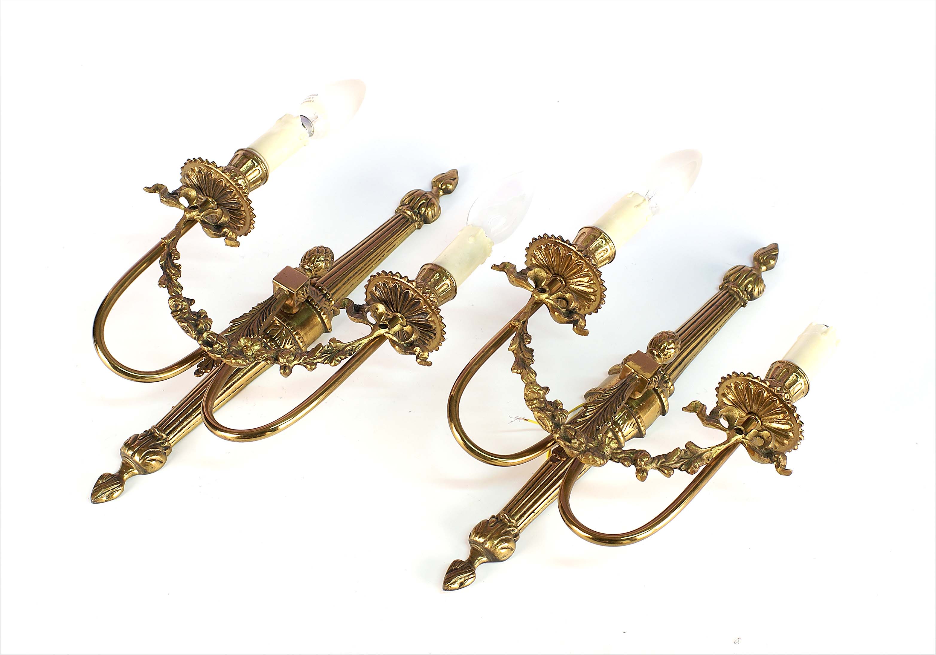 Coppia di appliques a due luci in bronzo dorato e decorato a motivo di nodo...