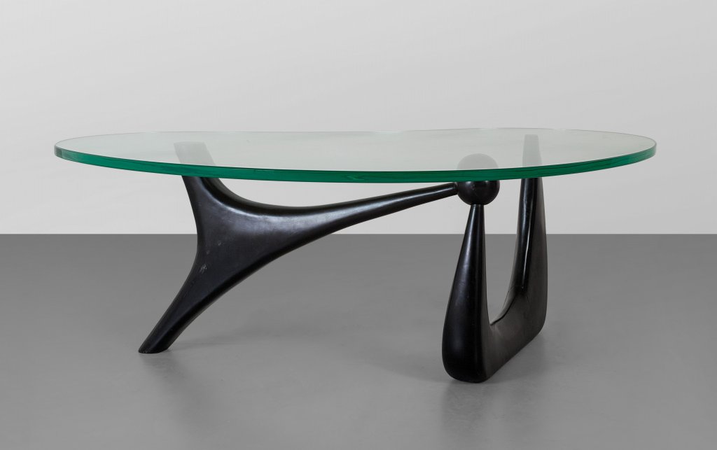 ISAMU NOGUCHI Un tavolino, circa 1937-1939.Legno laccato, cristallo sagomato...