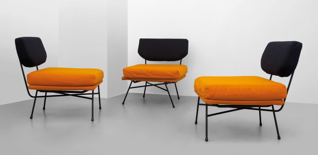 BBPR Tre poltrone componibili "Elettra" per ARFLEX, Ferro verniciato, cuscini...