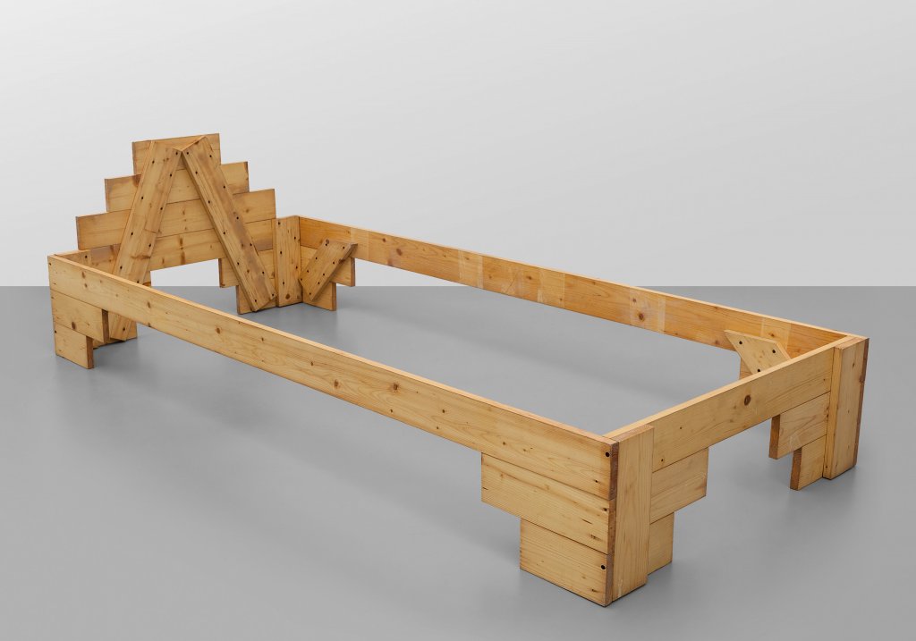 ENZO MARI Un letto "Emme" per SIMON METAMOBILE, 1974. Assi grezze di legno....