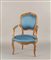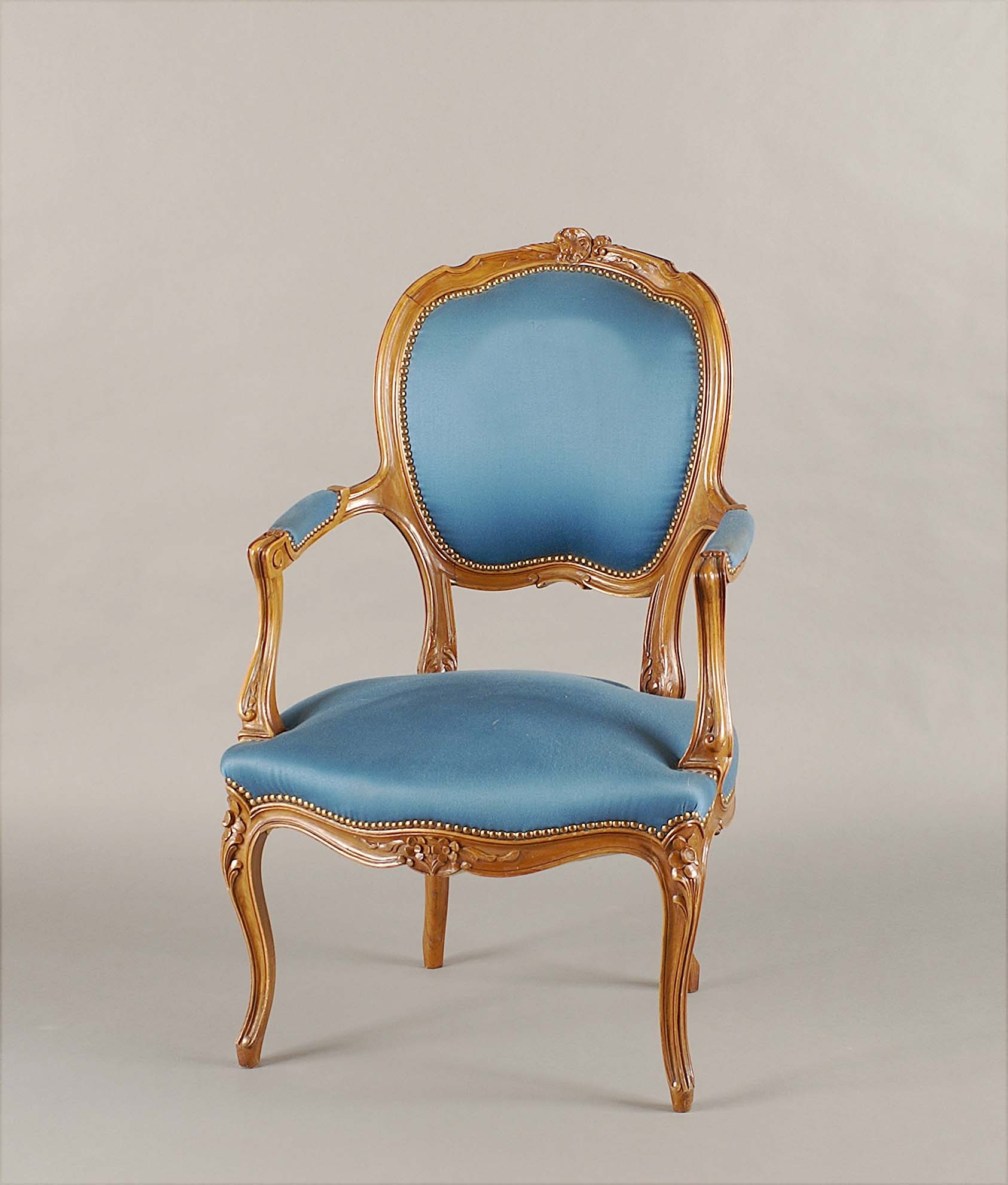 Poltrona in noce intagliata, schienale, braccioli e seduta imbottiti e rivestiti in tessuto, Francia, vecchia manifattura, h. cm. 94.