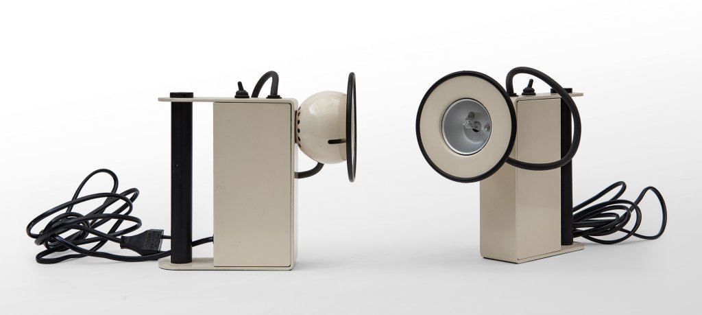 GAE AULENTI Due lampade alogene da tavolo "Minibox" per STILNOVO, 1979....