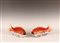 Coppia di sculture in porcellana raffiguranti due pesci, Cina, vecchia manifattura, cm. 12x30.