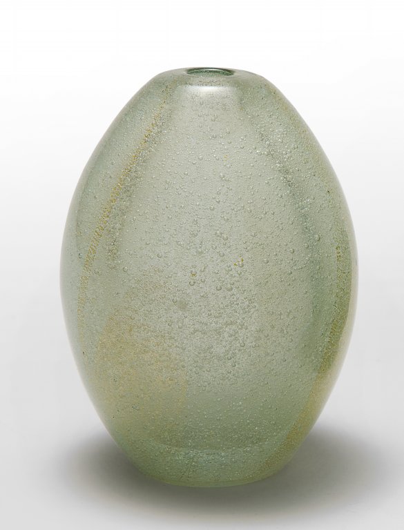 Un vaso in vetro sommerso a bollicine con applicazione di foglia d'oro, 1935.