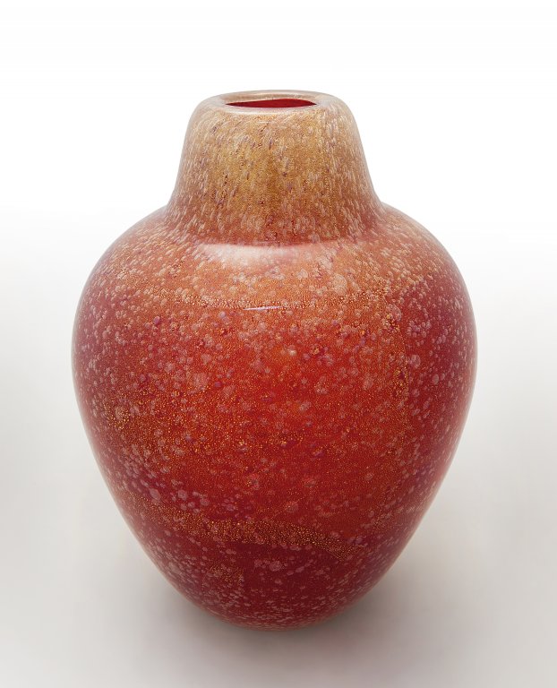FLAVIO POLI, SEGUSO VETRI D'ARTE Un vaso in vetro rosso pulegoso oro, circa...