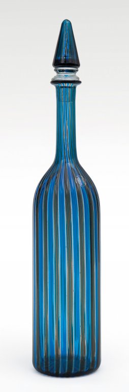 PAOLO VENINI Una bottiglia a canne verticali, 1989.Marca incisa "venini 89"....