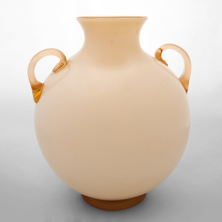 FLAVIO POLI, SEGUSO VETRI D'ARTEUn vaso in vetro incamiciato con piede e anse...