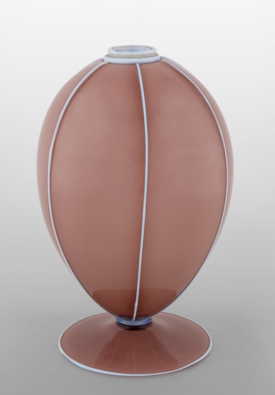 Un vaso in vetro incamiciato con fili applicati in pasta vitrea, anni '30.