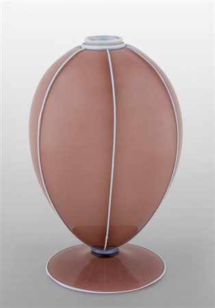 SAIAR FERRO TOSO Un vaso in vetro incamiciato con fili applicati in pasta...