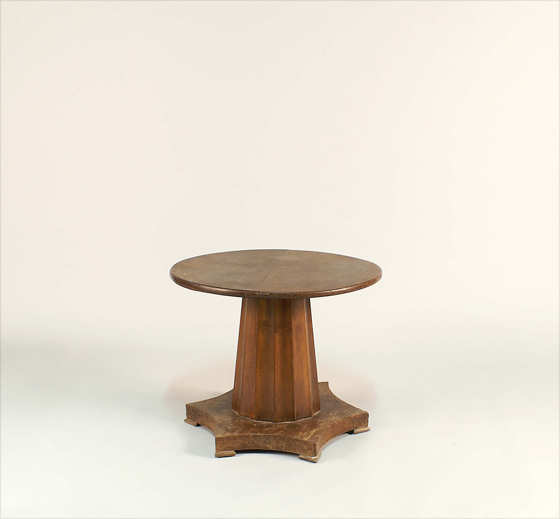 Tavolino basso in noce, piano circolare poggiante su base sagomata, vecchia...