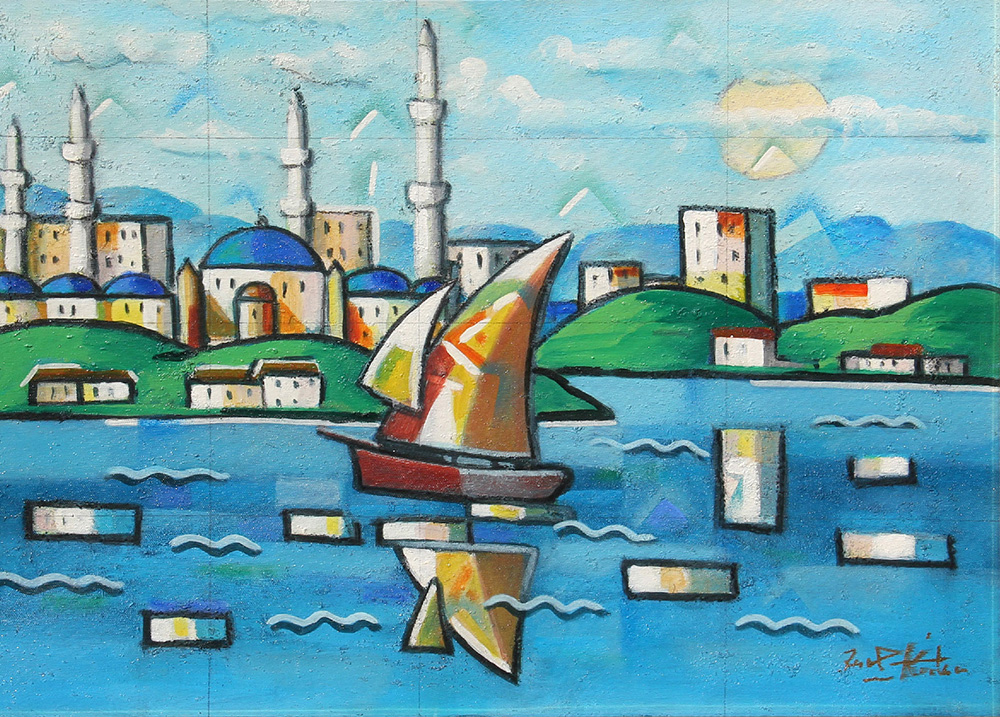 Ibrahim KODRA (Tirana 1918 Milano 2006) Istanbul, 1986, olio e tecnica mista su tela, cm. 50 x 70, Firma 'Ibrahim Kodra' (in basso a destra) #Firma, data, titolo, tecnica, misure, numerazione 'Ibrahim Kodra, 86, Istanbul, olio T.M., 50x70, P-15' (al retro) Autentica dell'artista su fotografia