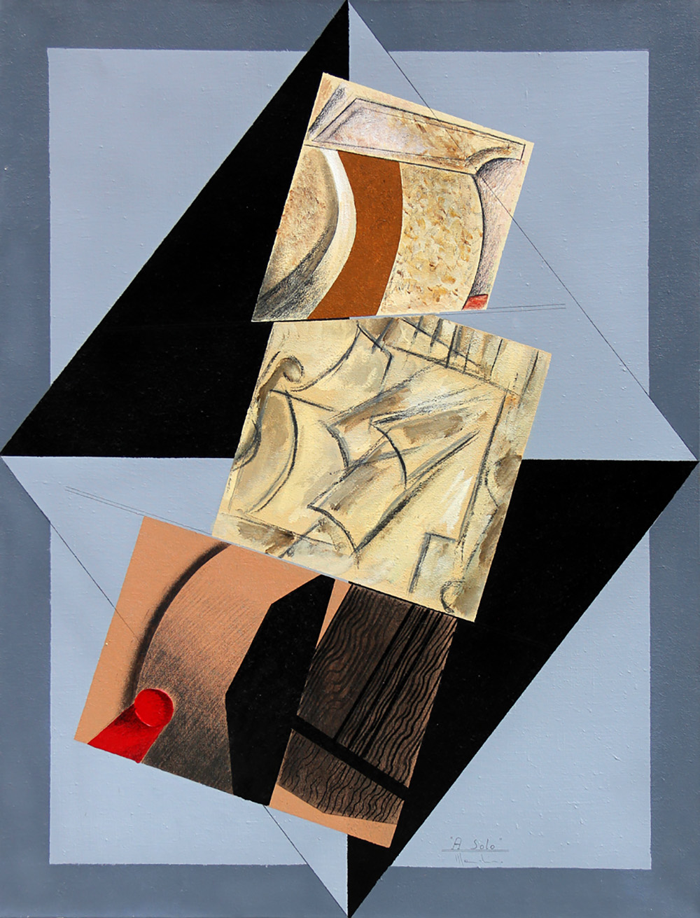 Aldo MONDINO (Torino 1938 Torino 2005) A Solo , 1977, acrilico su tela, cm. 81 x 65, Titolo, firma 'A Solo, Mondino' (in basso a destra) #Firma, luogo, data, titolo 'Mondino, Calice 77, 5, A Solo'; #etichetta della Galleria Cesarea, Genova (al retro)