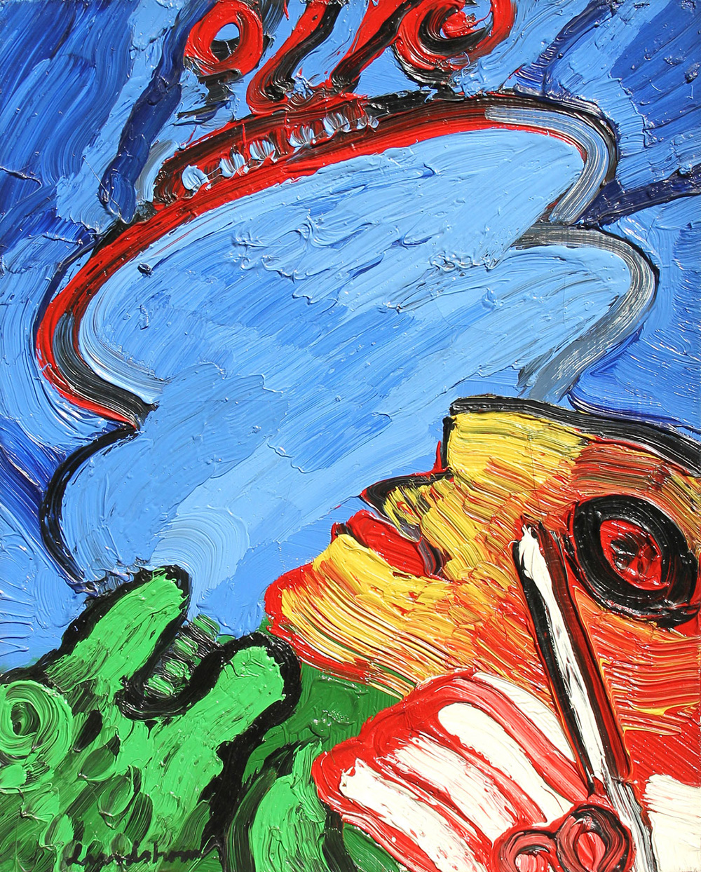 Bengt LINDSTROM (Storsjokapell 1925 Storsjokapell 2008) Les visages, 1973, olio su tela, cm. 81 x 65, Firma 'Lindstrom' (in basso a sinistra) #Etichetta di S. Erasmo Club d'Arte, Milano, 1973 (al retro)