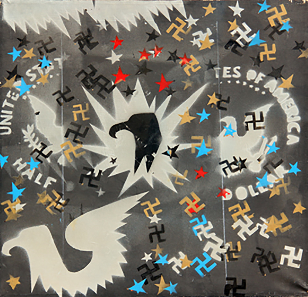Franco ANGELI (Roma 1935 Roma 1988) Simboli vecchi e nuovi, anni 70, acrilico su tela, cm. 60 x 60, Firma, titolo 'Franco Angeli, Simboli vecchi e nuovi' (al retro) Autentica dell'archivio Franco angeli in data 14/03/2017 con numero P-090317/899