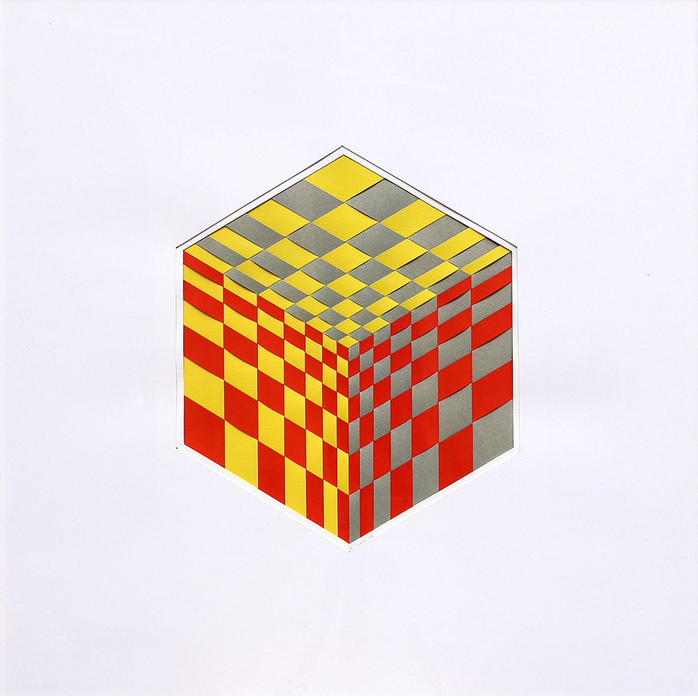 Edoardo LANDI (San Felice sul Panaro (Modena), 1937 ) Struttura visuale - influenza cromatica, 1964, cartoncini intrecciati, cm. 65 x 65, La misura è riferita al foglio. #Firma, data 'E.Landi 64' (in basso) #Titolo, tecnica, data, dimensioni, firma 'Struttura visuale - influenza cromatica, 1964, cm. 65x65, è autentico Edoardo Landi'; #timbro Gruppo N (al retro)