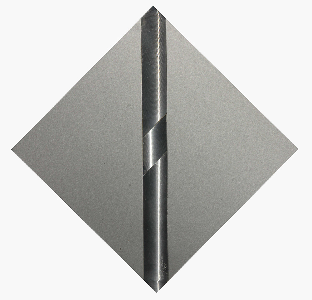 Getulio ALVIANI (Udine 1939 ) Superficie a testura vibratile, 1978, alluminio, cm. 24 x 24, Firma, data 'Getulio Alviani, 1978' (in basso a sinistra) #Firma, titolo, tecnica, data, misure, dedica 'Getulio Alviani, Superficie a testura vibratile, alluminio lucido e alluminio opaco, studio 1978, cm. 34 diagonale' (al retro) Autentica dell'artista su fotografia
