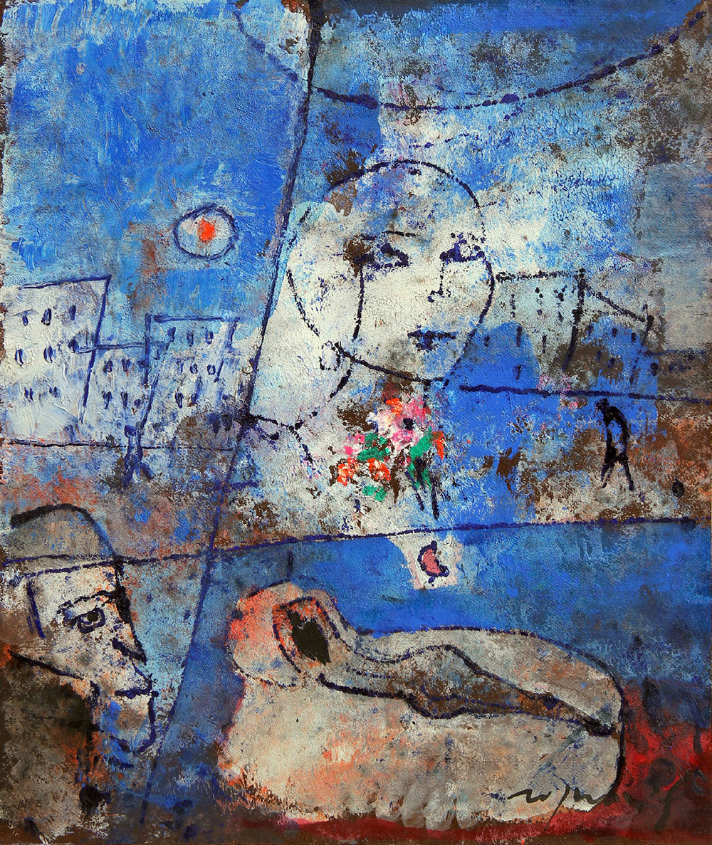 Franco ROGNONI (Milano 1913 Milano 1999) Interno esterno, 1994, tecnica mista su carta intelata, cm. 55 x 46, S.Castelli, P.Boccuzzi 'Franco Rognoni - opere scelte', galleria Dep Art, Milano, 2007, p.69, Firma 'Rognoni F' (in basso a destra) Autentica dell'artista su fotografia