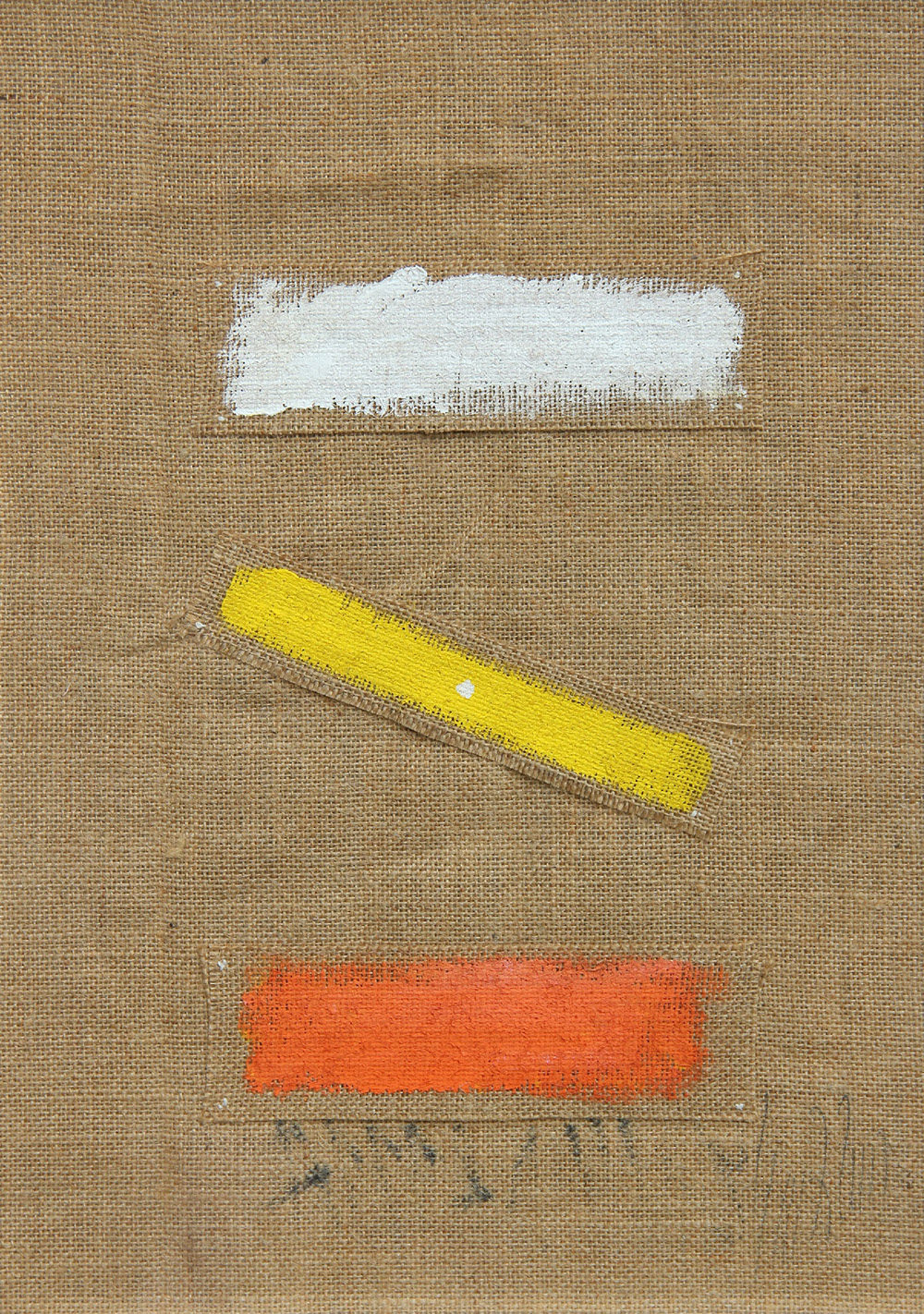 Salvatore EMBLEMA (Terzino, 1929 Terzino, 2006) Giallo trasversale, 1996, acrilico e terre minerali su juta, cm. 49 x 35, Firma 'Emblema' (in basso a destra) Certificato di autenticità di Telemarket