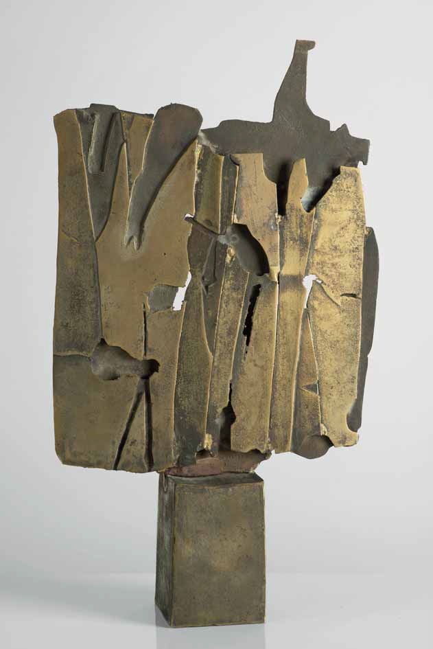 PIETRO CONSAGRA Mazara del Vallo 1920 – Milano 2005 MIRAGGIO MEDITERRANEO, 1961 bronzo, altezza cm 58. Firma e data incisa in basso al centro: Consagra 61. Esemplare unico. Bibliografi a: Pietro Consagra- maquettes 1947-1976, catalogo della mostra, Galleria Marlborough, Roma 1976, n. 54 riprodotto; P. Consagra, La ruota quadrata, Edizione All’insegna del Pesce d’Oro, Milano 1976; Pietro Consagra - Mostra antologica, Galleria Stendhal, Milano 1976, n. 54 riprodotto; Forma 1 1947-1987, catalogo della mostra, a cura di B. Krimmel, Mathildenhöhe, Darmstdadt 1987, n. 57 pag. 116 (riprodotto); F. Gallo, Origini – siciliani protagonisti del novecento, catalogo della mostra, Palazzo Spadaro Scicli, Ed. Fondazione Orestiadi, Trapani 2001, pag. 131, 254 (riprodotto con le dimensioni cm 58,5 x 33,5 x 10). La bibliografi a è relativa alle diverse fusioni dell’opera. Autentica su fotografi a rilasciata dalla Galleria Il Milione, in data Milano, 27 settembre 1995 (in copia). Autentica su fotografi a fi rmata dall’autore, in data Milano, 25 settembre 1995 (in copia).