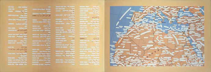 EMILIO ISGRO’ Barcellona Pozzo di Gotto 1937 ROTAZIONE, 2005 acrilico su tela montata su compensato sagomato a forma di libro, cm 40x120. Titolato, datato e fi rmato al verso: Rotazione 2005, Emilio Isgrò Autentica su fotografi a fi rmata dall’artista in data Milano 3 settembre 2006.